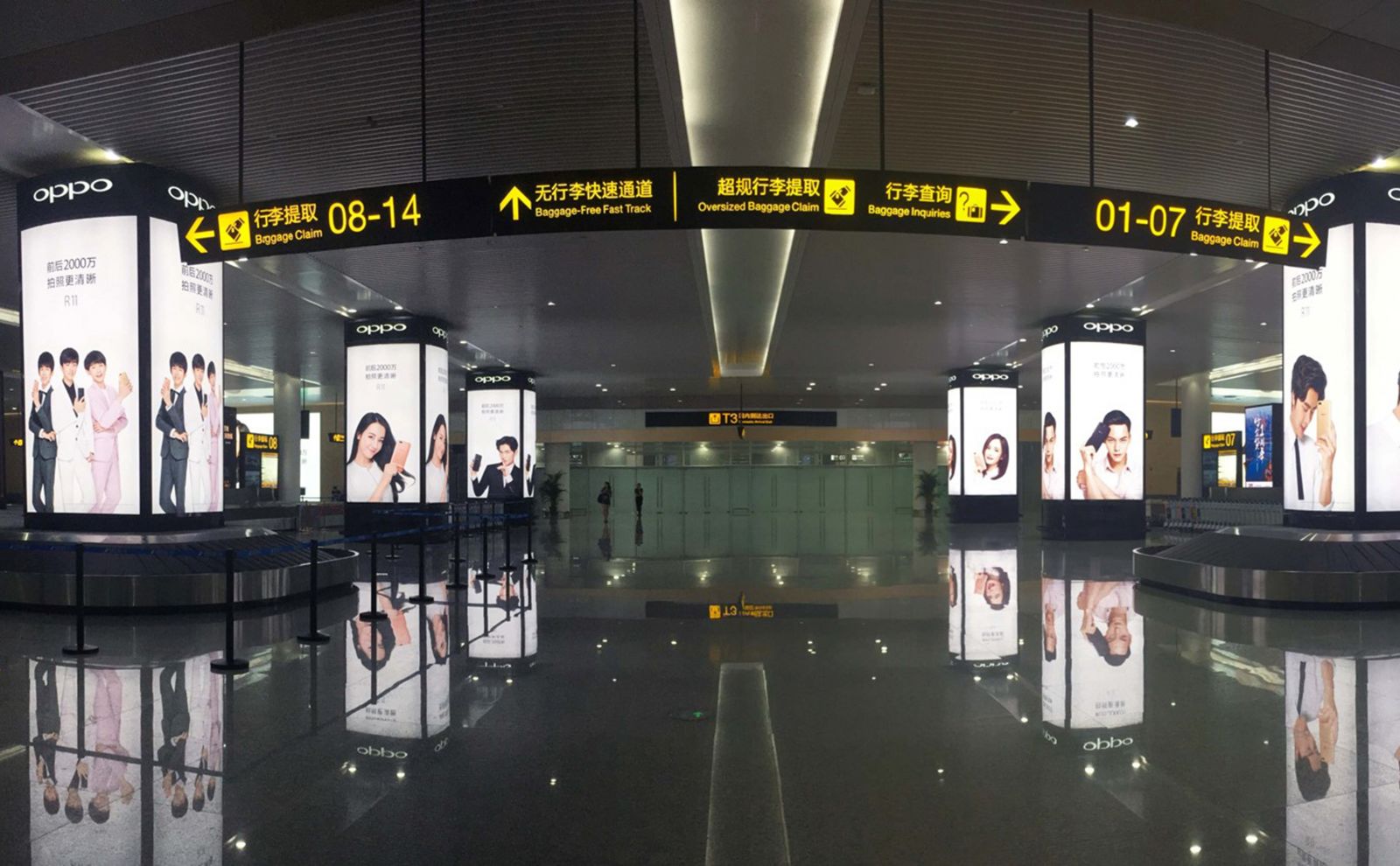 T3 Domestic Arrival Pedestrian Convergence Point Three-sides Digital Billboard Package